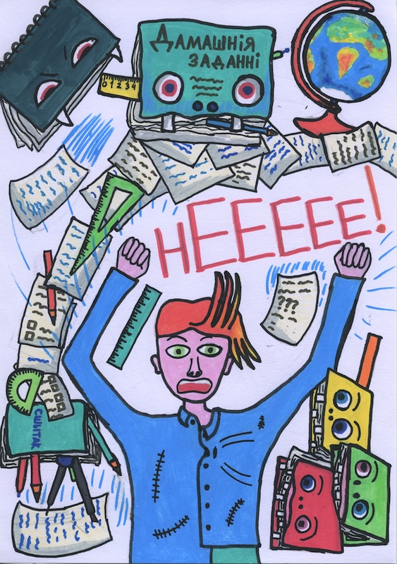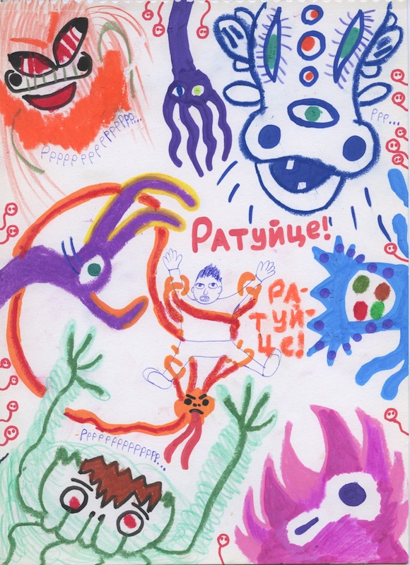 Vera, perhaps you could tell us something about your son who made these drawings: Is he a professional comic artist or draughtsman? Can you introduce him to us a little? How old is he?