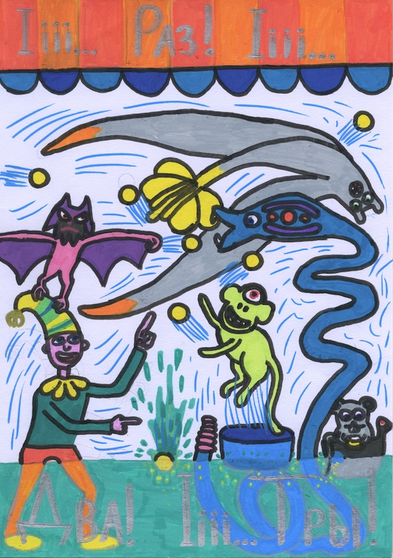 The »ABC der Ausrufe« is an artistic interpretation of the Belarusian alphabet by poet Vera Burlak and her son Kastuś Žybul (19), who lives with autism. For each sound of the 34 letters, the two found an emotional exclamation and transformed these exclamations into 34 stories–fantastic comic drawings by Kastuś, whimsical, funny, enigmatic poems by Vera.