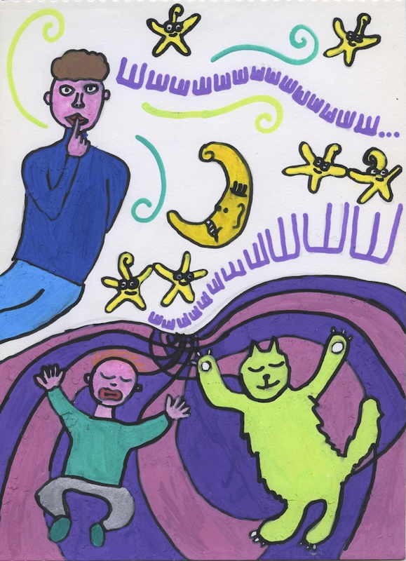 He is 19 years old and he has autism. Kastuś was therefore unable to get an education in Belarus. And now we are looking for a way for him to catch up. He wants to be an artist. He likes to paint, has always enjoyed painting and drawing, and now it might become something more. The alphabet of exclamations is Kastuś’s main project so far. He is currently working a lot with Monika Nuber for the video, and it is also very interesting how he does it. He paints and Monika makes the video. [Kastuś is very hard-working and very motivated. That’s very important for me because normally it’s difficult to get him interested in something].